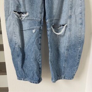 So bold barrel jeans from our We The Free collection featured in a mid-rise fit with subtle distressed detailing and wide-legs that taper at the ankle.