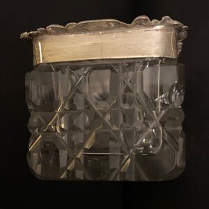 Antique English Silver & Hobnail Cut Crystal Trinket Box