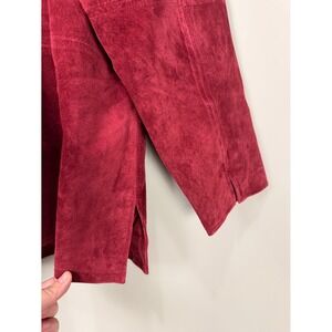 Terry Lewis Classic Luxuries Suede Leather Jacket Pants Set Red Women's L NWT