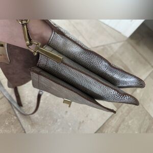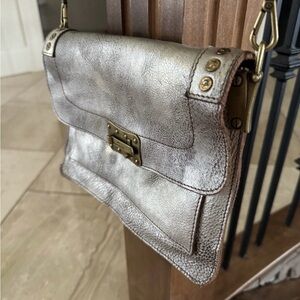 Campomaggi Teodorano Silver Metallic Leather Crossbody Shoulder Bag RARE HTF