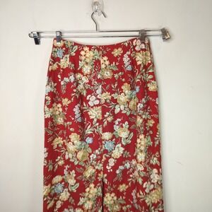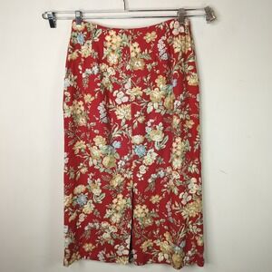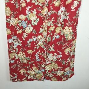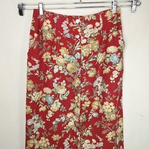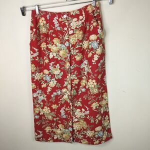 Vintage Orvis red floral button up maxi skirt. Size 12P. 55% linen, 45% rayon. (24433)