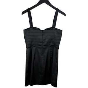 The Kennedy mini dress reimagines the little black dress with a striking, cocktail-ready silhouette, featuring knotted front bows, flirty cutouts, and flattering ribbon details that run down the front. Crafted from smooth satin with fabric milled in Italy, this statement mini is finished with a square neckline that shapes into an elegant sweetheart effect and a sleek zip fastening for a polished, dramatic look.
