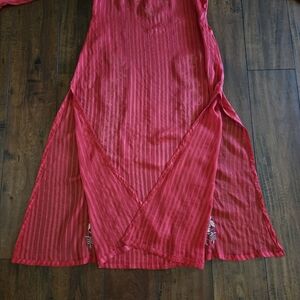Floral front beige brown embroidered red chiffon, light fabric shirt fully lined with solid same color.