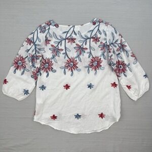 Anthropologie Kindred L White Peasant Blouse Boho Top Embroidered Floral NEW