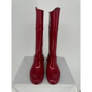 Michael Kors Fulton Harness Rain Boots Red Cabin City Fall Spring Chic Size 6