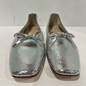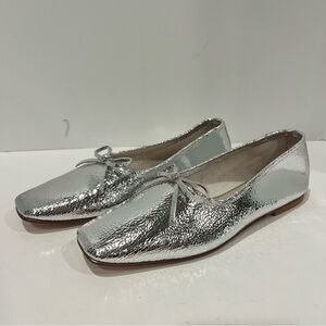 Freda Salvador Jada Square Toe metallic Silver Leather Shoes Ballet Flat Size 9
