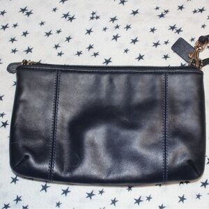 Sleek Coach wristlet in rich leather. Features a detachable strap. Ideal for day or night.