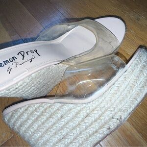 GUC LEMON DROP CLEAR STRAPS WEDGES PLATFORMS SZ 8.5 SHOES SANDALS