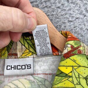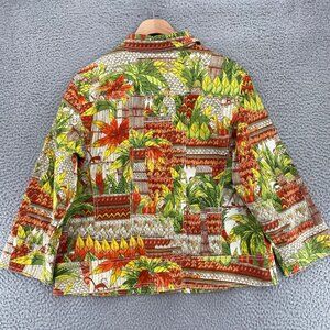 Chicos Jacket Womens 2 US Large Green Orange Tropical Hidden Monkey Twill Button