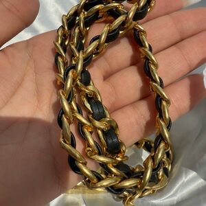 Anthropologie Black Gold Chain Belt With Designer Mini Charm Bag