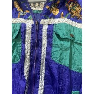 Vintage Windbreaker Women's Size M 90s Mardi Gras Colorblock Jacket