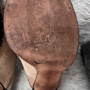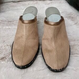 Cole Haan Tan Fur Studded closed Toe Block Heel Mule Sandals Women's Size 7.5AA