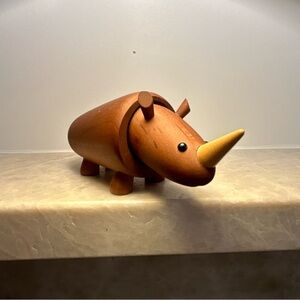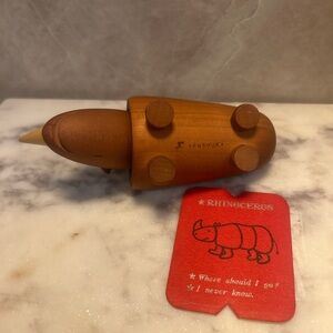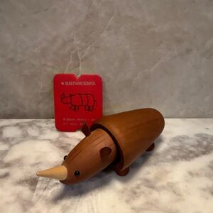 Charming vintage Senshukai “Royal Pet” wooden rhinoceros, beautifully crafted in smooth natural wood with minimalist Scandinavian-style design. A collectible mid-century inspired toy/figure that appeals to fans of wooden animals, Japanese design, and classic children’s collectibles.