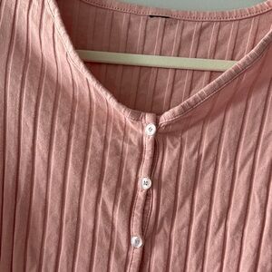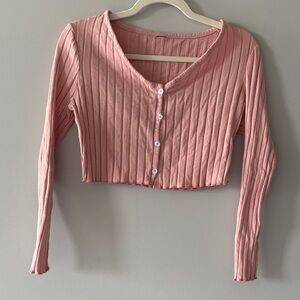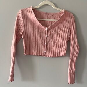 Pink Ribbed Button-Up Crop Top with v neckline and long sleeves NWOT