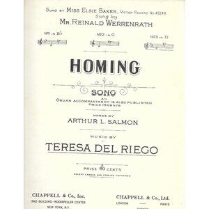 Homing Sheet Music 1917 Arthur L Salmon Teresa del Riego Chappell