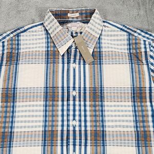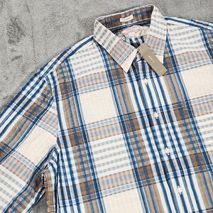 Wallace & Barnes Shirt Mens Large Blue Brown Plaid Seersucker Button Down J.Crew