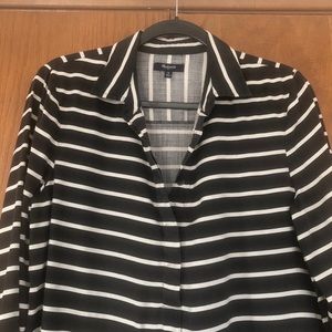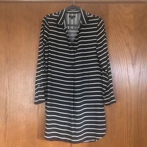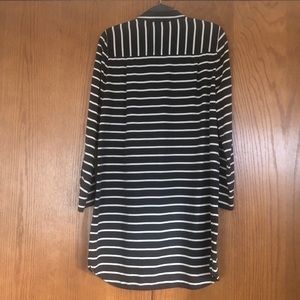 GUC 100% silk shirt dress / tunic. Black & white striped with long sleeves. One tiny hole near the tag as shown and the slightest fraying (about 1/4”) at hem of left seam (very minor).