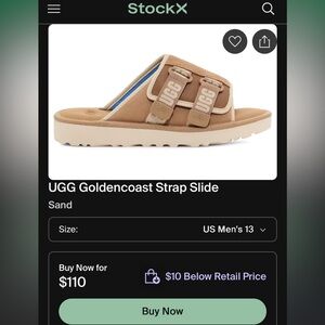 A slide sandal topped with logo-branded ripstop straps for a customizable fit is finished with a grippy sole that can be worn in or out of the house.
