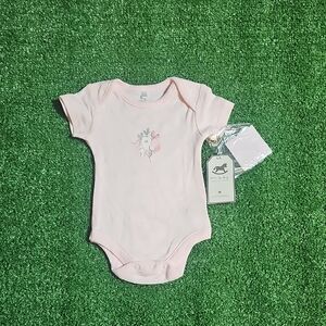Delight your little one with this charming pink bodysuit featuring a whimsical unicorn design.