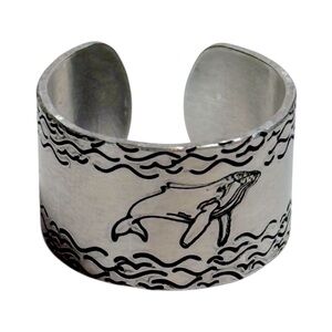Handmade whale ocean design adjustable hypoallergenic silver hand-stamped ring