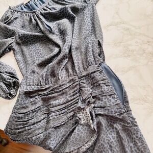 Ramy Brook Jeannie Silk Mini Drop Waist Dress Blue Leopard Women's Size 0 NEW