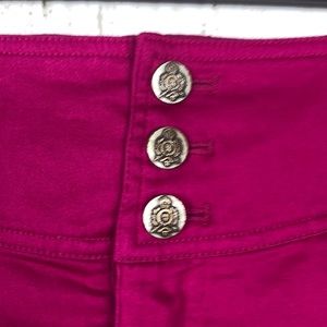 Pink shorts front pockets side buckled and buttons on front, corset lacing on back of shorts