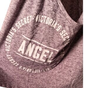 Victoria's Secret Angel racerback tank top in a heathered purple. This athletic-inspired top features the iconic Angel logo on the side, perfect for workouts or casual wear. Ideal for gym sessions, yoga classes, or weekend lounging.