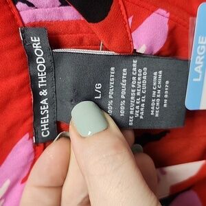 NWT CHELSEA & THEODORE RED SLEEVELESS FLORAL BLOUSE LARGE
