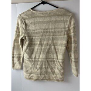 Ralph Lauren Women Sweater Sz XS Cotton Beige Striped 3/4 Sleeve Pullover