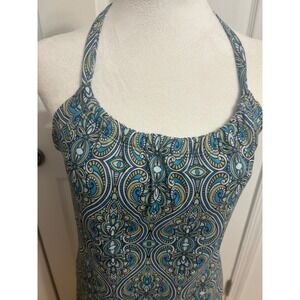 Prana Quinn Athleisure Outdoor Mini Racerback Dress Women Medium built in bra Green blue paisley. No flaws. Smoke Free Pet Free Home
