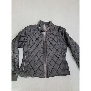 Schott Jacket Womens L Black Quilted Full Zip Pockets Belted Motorcycle