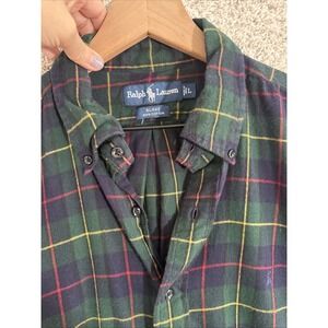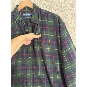 Ralph Lauren Shirt Mens Large Green Plaid Long Sleeve Button Down Vintage