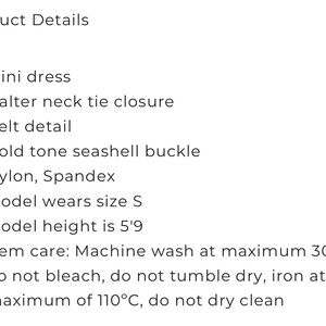 Sleek black mini dress. Features a stylish belt detail. Perfect for a night out.