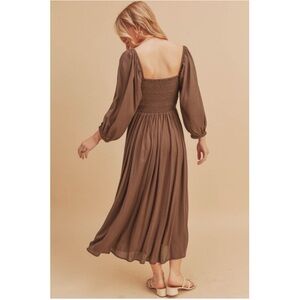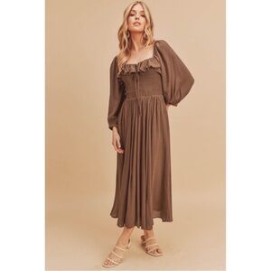 Step out in style with this elegant brown midi dress. Perfect for any occasion, this dress features a flattering fit and a chic design.