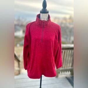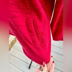 This gorgeous fleece will keep you cozy on these ever chilly days! The red color pops and a zippered neck allows for a closed or open collar. Excellent condition!