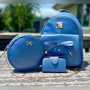 NWOT Women’s 3pc Vegan Leather Mini Backpack Shoulder Bag & Card Wallet