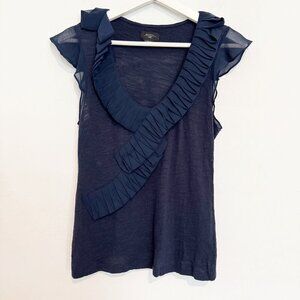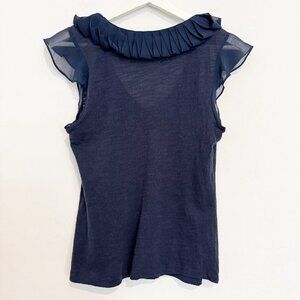 Deletta Ruffle Blouse Top Anthropologie in Navy Blue Fairy Romantic Size Small