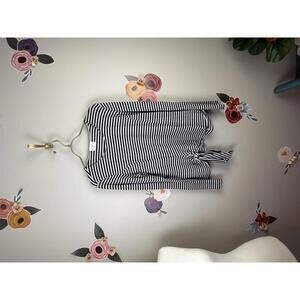 T.La from Anthropologie Black Stripe Tied Front Long Sleeve Tee - Size - Medium