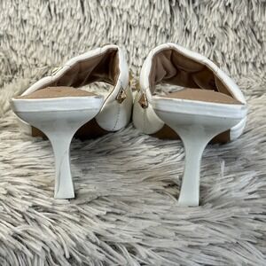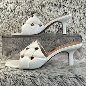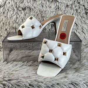 Steven NY Irvan White Embellished Gold Studded Stiletto Heel Sandals Sz 10 Shoes
