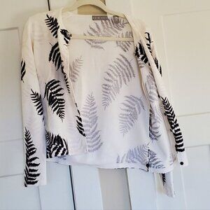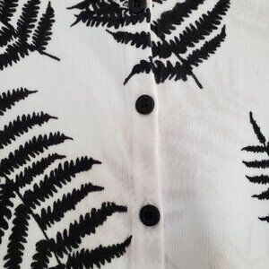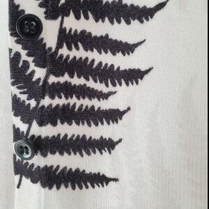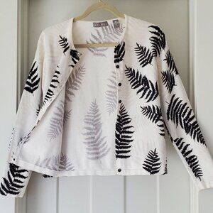 Kate Hill White Cardigan with Black Fern Leaves Imprints. Size S