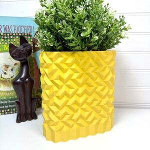 With its geometric texture and unique triangle shape, it adds a sleek, sculptural touch to any space — perfect for desks, shelves, or windowsills.