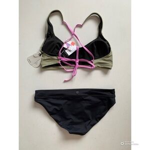 Prana Large Bikini Set Color Block Tulum Top + Black Summer Wave Bottom NWT