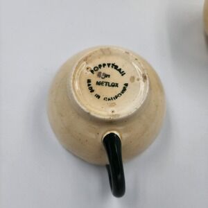 Metlox Poppytrail Green Rooster Flat Cups California 4 cups only. These are so nice very good used condition, one stamp on bottom is rubbed off or miss stamped. No chips or cracks.