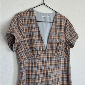 Pepper Mayo Plaid V Neck Mini Dress