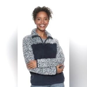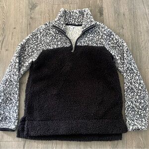 Sonoma Women's Teddy Jacket black white euc medium Sherpa soft warm quarter zip