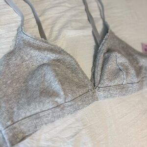 New with tags! Gray lace bra/bralette with tiny bow design in front. Adjustable straps and stretchy band.