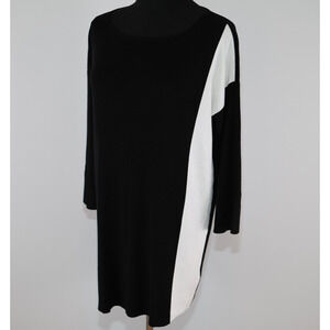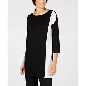 A6 Auth EILEEN FISHER Black/White Sleek Tencel Bateau Neck Top Tunic Size S/P