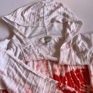 Easy, breezy, and perfect for beach days or casual weekends — this Chico’s hooded top features a soft orange tie-dye effect on blended, lightweight fabric that feels great against the skin. The front pockets add that cozy, practical touch, while the relaxed fit makes it ideal for throwing on over a swimsuit or pairing with shorts or leggings.