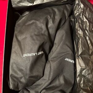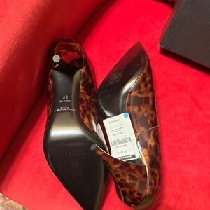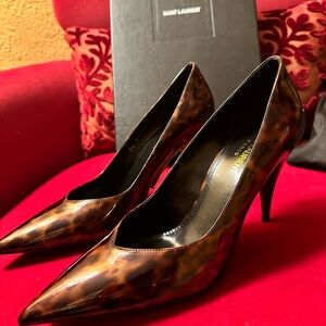 Chic Saint Laurent heels with a bold leopard pattern. Elevate your look effortlessly.