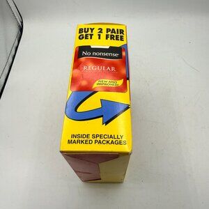Classic, vintage No Nonsense pantyhose in the iconic red/yellow box β a true throwback essential. This is a boxed 3-pair set, still sealed and new with original packaging.